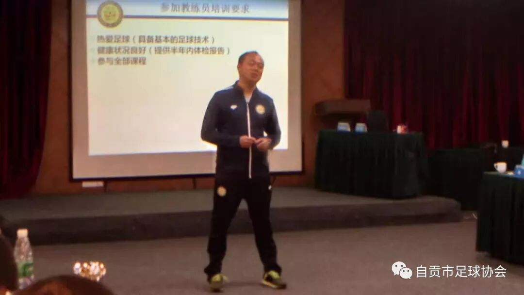 自贡市教育和体育局一直以来都非常重视自贡足球青训工作,青体科副科长王勇在本次开班仪式中,首先表达对大家参加本次四川省足协E级教练员培训班(自贡第二期)的欢迎,并提到在昨天10月15日四川省足协秘书长助理郭荣贵对自贡青训中心调研,谈起四川省足协对自贡足球底蕴的认可,同时也谈到自贡现阶段青训的整合力度不够;希望各位学员通过本次培训班能够真正学到知识,真正把讲师讲到的知识运用到实践中,并灵活运用;培训绝不只是为了大家拿证,希望能够学以致用,立德树人,为建设足球强国出自己的一份力;希望大家讲规矩;最后希望大家认认真真,将所学的知识运用到执教之中,祝福所有学员学有所成,学有所获。